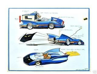The car is clearly influenced by the Super Powers Batmobile and the Corvette (wheels and nose of top car) of the time. Still a really nice car that should have been produced.