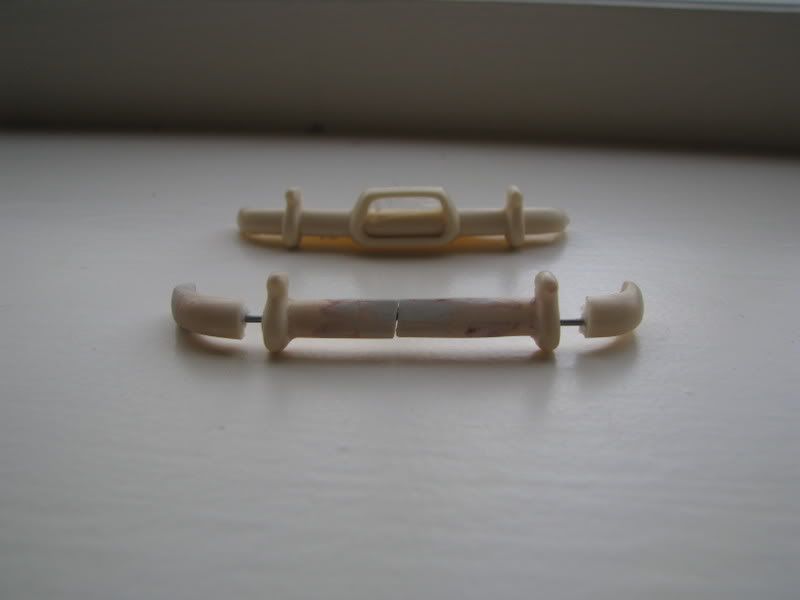 The next step is the front bumper. Turns out, the resin bumper doesn't even fit onto the car! It's too short! So, lots of work getting it to look like the drawing :
