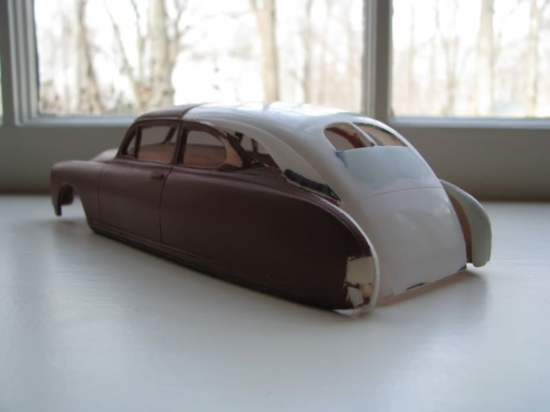 How's the width on that fastback roof? I know Fords were really skinny cars, and the Hudsons were pretty wide - just wondering if you'll be able to use it as-is or if you'll have to widen it to fit the Hudson. If you do, I'd say split the roof first and try to line up the edges first. That should let you know if you will need to notch the Hudson roof or if you can just feather the edges.