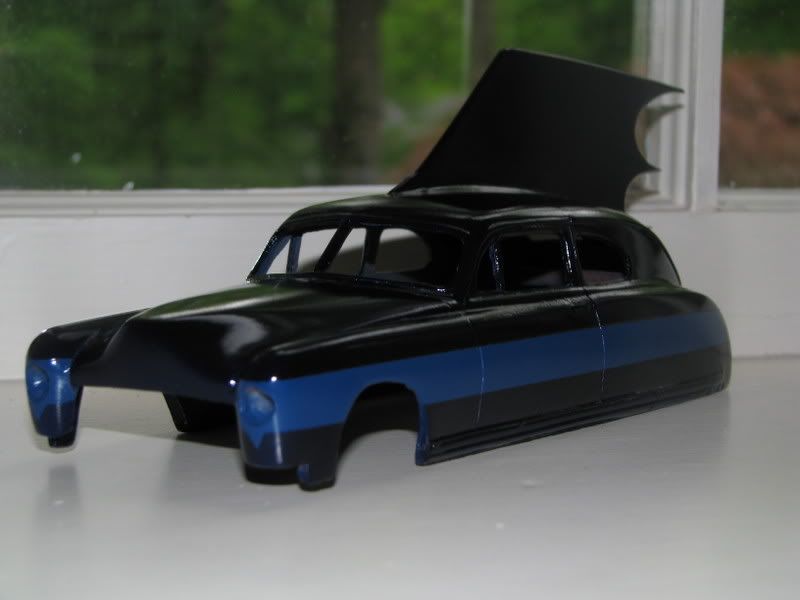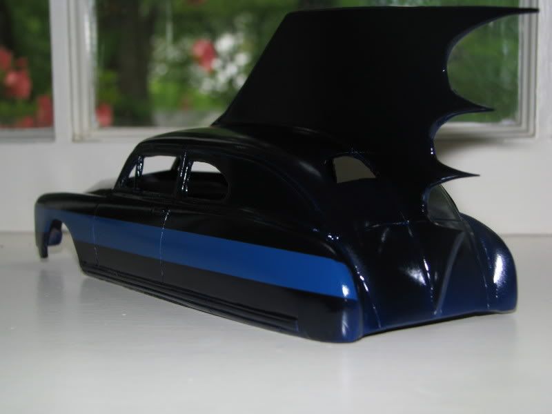 The colour in the previous pix is now only seen in the pinstripe. Dark Blue (TS-55) is now the main body colour, as with the rest of the Golden Age Batmobiles in my collection.