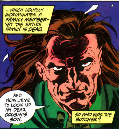 Arnold Etchinson is a serial killer who was convinced that his family was evil, He believed that he absorbed something of their life force when he killed them. He was apprehended and incarcerated in Arkham Asylum. He escaped several times and was usually recaptured by Batman; the last time he escaped was when Bane set all the inmates free, and he went on to kill several more members of his family.