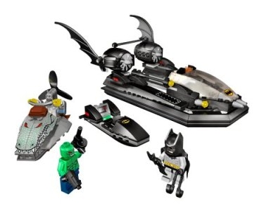Hot on the trail of Killer Croc! The Batboat hovercraft is in hot pursuit of Killer Croc and his swamp jet