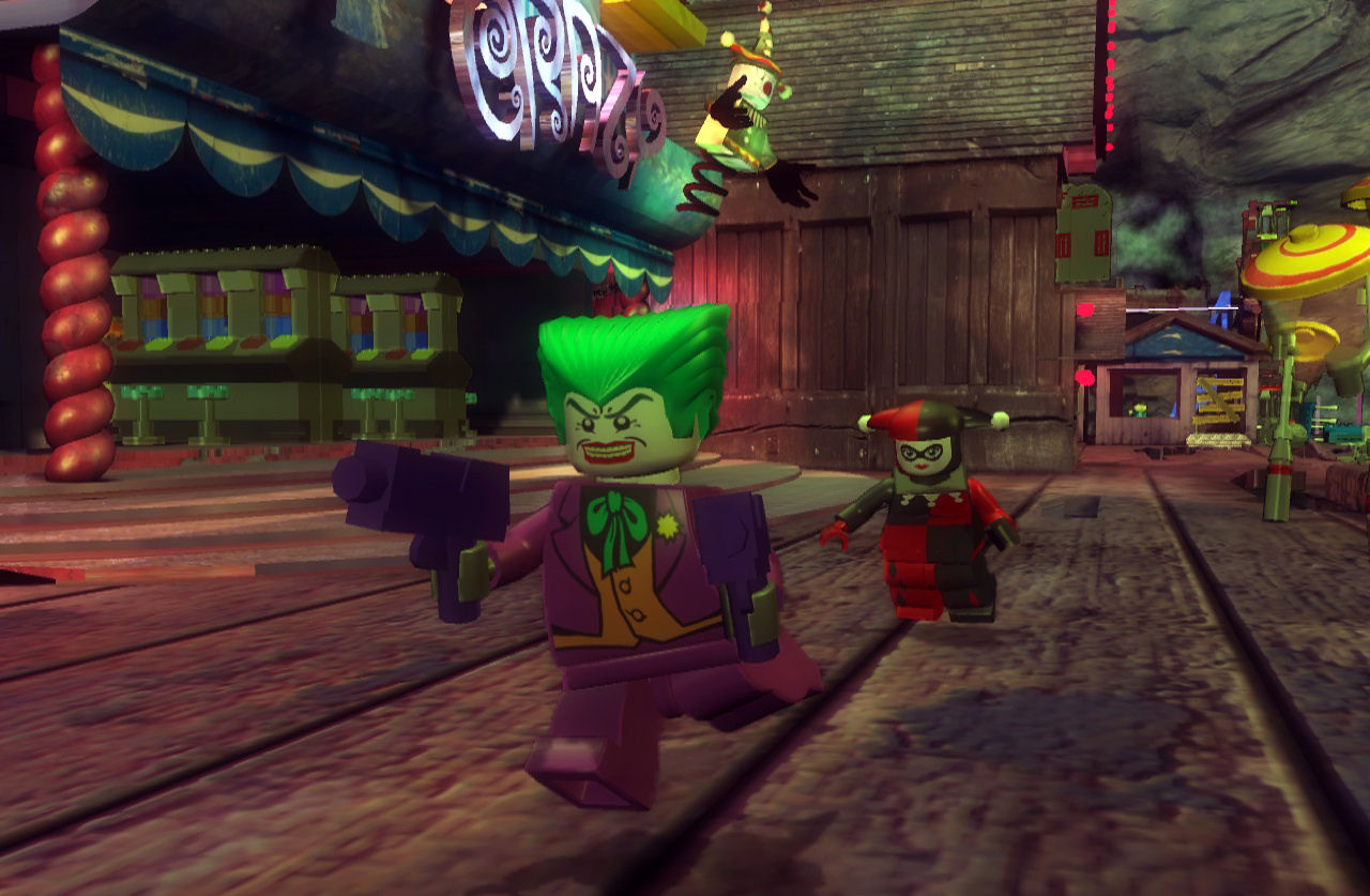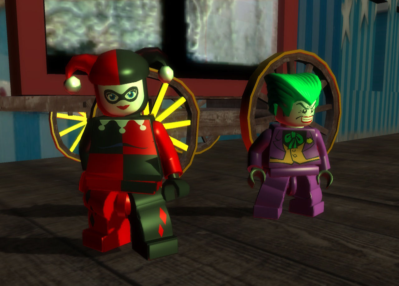• Harley Quinn- The deputy of Joker. She can double jump. She and Joker go to the Fairground to capture Commissioner Gordon so that Batman can get him. Then, she goes to Gotham Cathedral to activate Joker's plan. In prison, there are posters of Joker in her cell and she is admiring them and making kissing sounds.