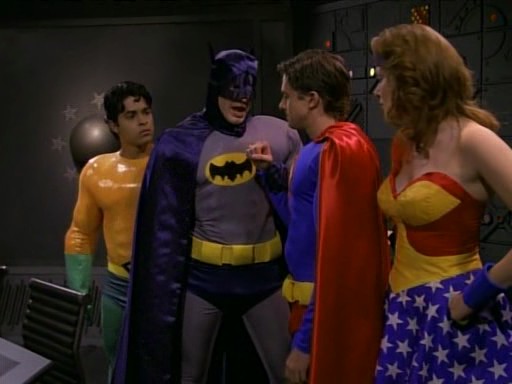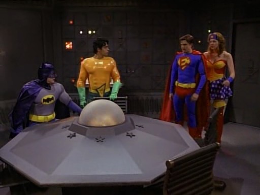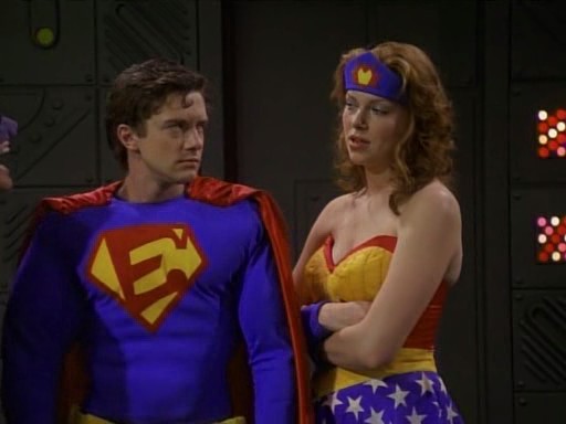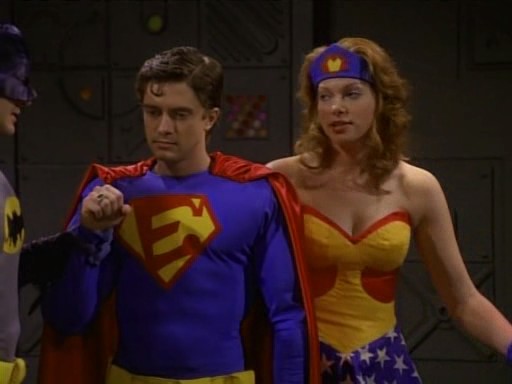 End Credits: In the Super Pals secret hide-away, in the circle, Donna asks if her outfit makes her butt look fat, and Eric says no; Kelso tells them that he and WonderBoy are thinking of moving in together, and his parents are going to freak out. Hyde and Jackie are kissing; they stop and Jackie says, "Your parents will freak? We're twins!" Red says that no one cares about him, and just because he's evil doesn't mean that he doesn't have feelings