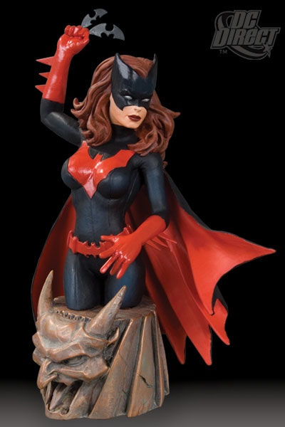 The popular WOMEN OF THE DC UNIVERSE line of cold-cast porcelain busts continues with the addition of Terry Dodson's Batwoman bust! This crime-fighting partner of Batman appears here standing atop a gargoyle base and ready to throw the batarang clutched in her fist. This Batwoman Bust measures approximately 5.5" tall x 3.5" wide x 2.5" deep and is packaged in a 4-color box.