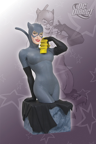 The popular WOMEN OF THE DC UNIVERSE line of cold-cast porcelain busts continues with the addition of Catwoman! Clad in her classic gray outfit, this feline fatale has just purr-loined Batman's belt and cape!