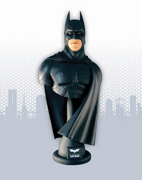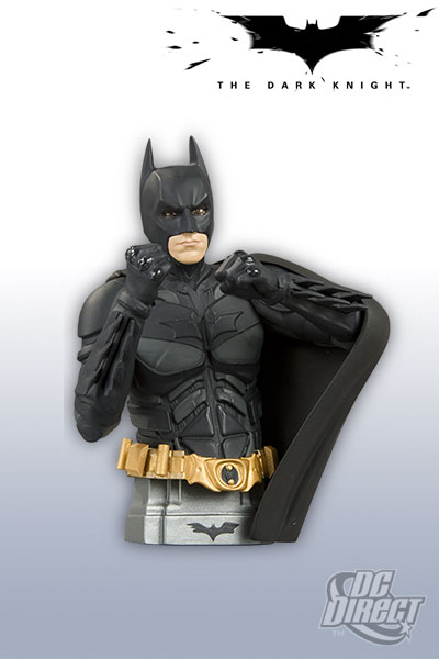 Dressed in the new Dark Knight costume and ready to fight any foes in his way, this Batman bust is hand-painted and cold-cast in porcelain.