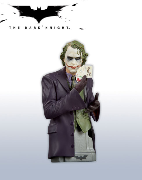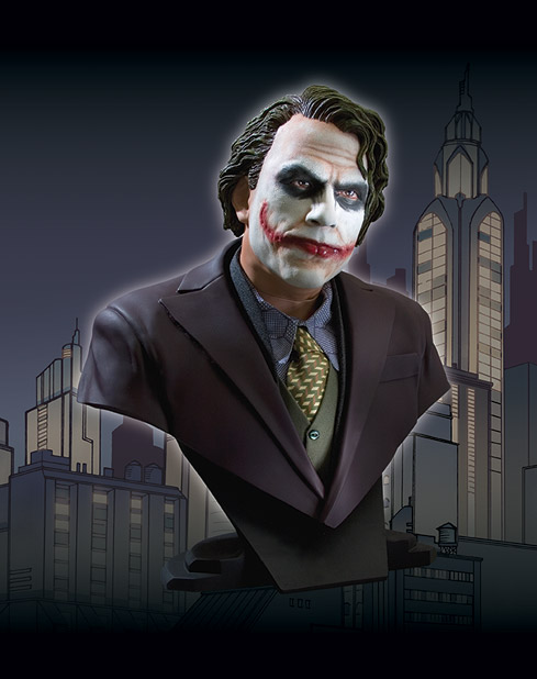 Continuing the excitement of the smash hit The Dark Knight, DC Direct offers yet another incredible collectors’ item: The Dark Knight: The Joker 1:2 Scale Bust!