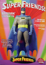 DC Direct DC Direct continues its line of SUPER FRIENDS! Maquettes, featuring the heroes as they appeared in the legendary SUPER FRIENDS! animated TV series. The SUPER FRIENDS!! Batman maquette, the first in this series, is a limited-edition, hand-painted, cold-cast porcelain statue measuring approximately 8 3/4" tall x 4" wide x 4" deep and packaged in a 4-color box. Collect all five in 2003!