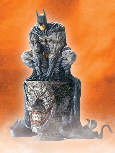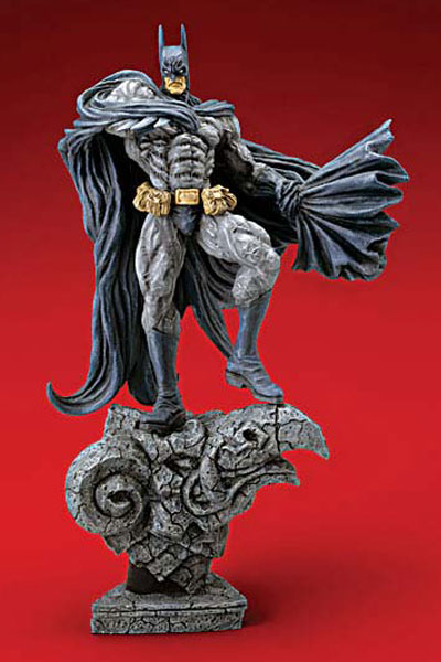 Kotobukiya presents its third in a line of fully painted, cold-cast porcelain statues of Batman. Under special arrangement with Kotobukiya, DC Direct brings you this finely-detailed Batman statue capturing Batman in one of his most iconic, recognizable poses. Perched atop a gargoyle, the Dark Knight keeps a vigilant watch over Gotham City. This statue measures approximately 7.5" tall x 3.5" wide x 3.3" deep and is limited to an edition of 2,000 available through DC Direct.