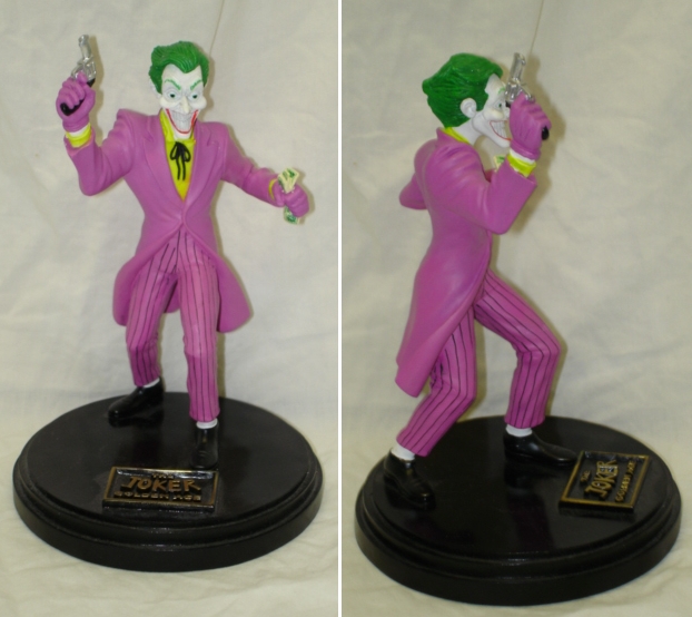 Dave Grossman Creations This fifth offering in the line of DC Comics figurines featuring characters as they appeared in the "Golden Age." First appearing in Batman #1, the Clown Prince of Crime, The Joker, has been a constant thorn in the Batman's side for over 60 years! Highly detailed and standing 7" tall on a sleek black base emblazoned with a gold "The Joker" emblem, this sculpted piece showcases the Dark Knight Detective's most insane nemesis with maddening detail! Fully painted and ready for display. ADDITIONAL IMAGES
