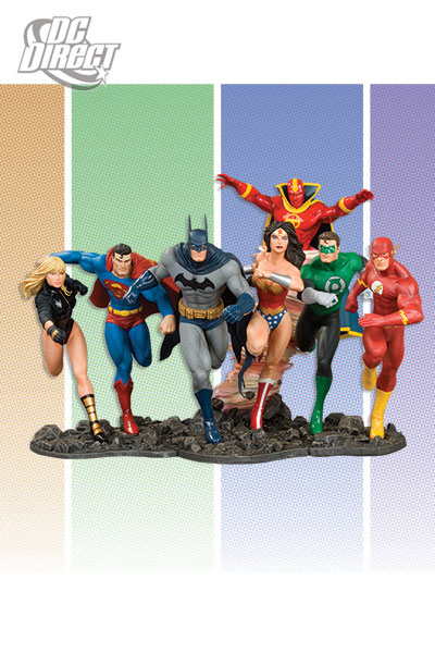 The JLA BUILD-A-SCENE STATUE is a limited-edition, hand-painted, cold-cast porcelain statue measuring approximately 8" tall x 14" wide x 10" deep when fully assembled. (Each piece measures approximately 8" tall x 5" wide x 5" deep, except for Red Tornado, which measures approximately 10.375" tall x 8.5" wide x 5.5" deep.) It includes a certificate of authenticity and is packaged in a 4-color box. This limited edition statue is manufactured to order.