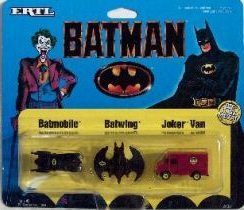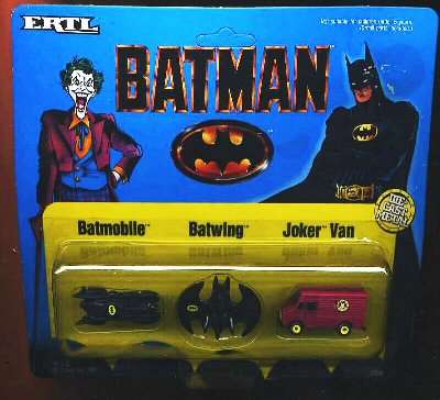 Ertl Micro, 1/74 scale renditions of The Batmobile, Batwing, and Joker Van. ADDITIONAL IMAGE |