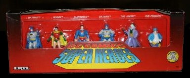 Ertl A 6-piece die-cast figure collection featuring Two Batmans, Robin, Superman, The Joker, and The Penguin.. |