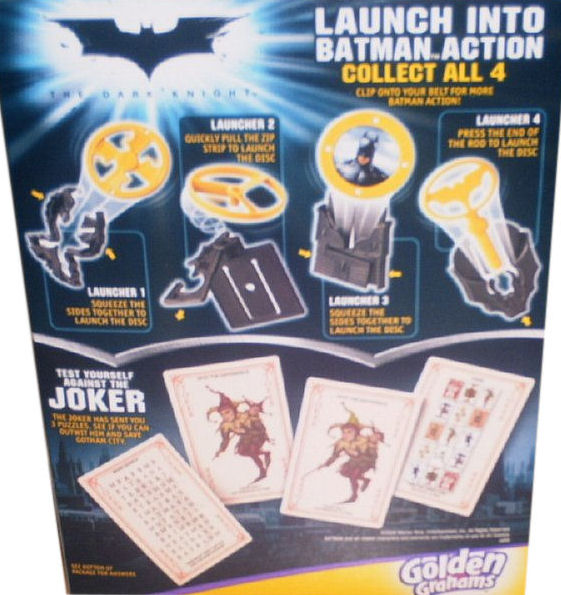 General Mills Delicious Golden Grahams. Includes a free deformed Batman or Joker figure in the box!