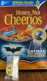 General Mills Hardy and healthy Cheerios. Includes a free deformed Batman or Joker figure in the box!