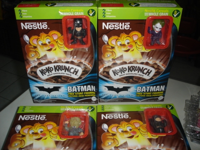 General Mills Delicious Koko Krunch. Includes a free deformed Batman, Joker, or Scarecrow figure in the box!