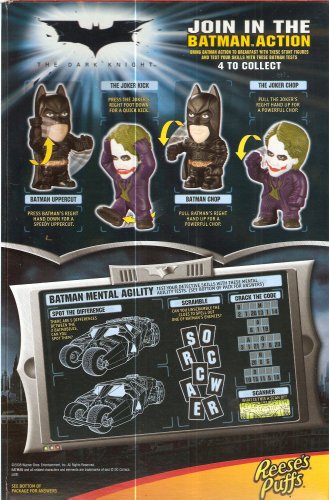 General Mills Delicious Reese's Puffs. Includes a free deformed Batman or Joker figure in the box!