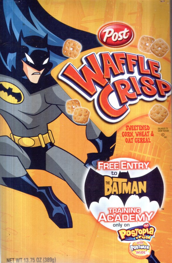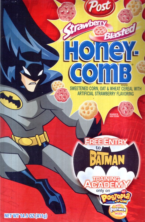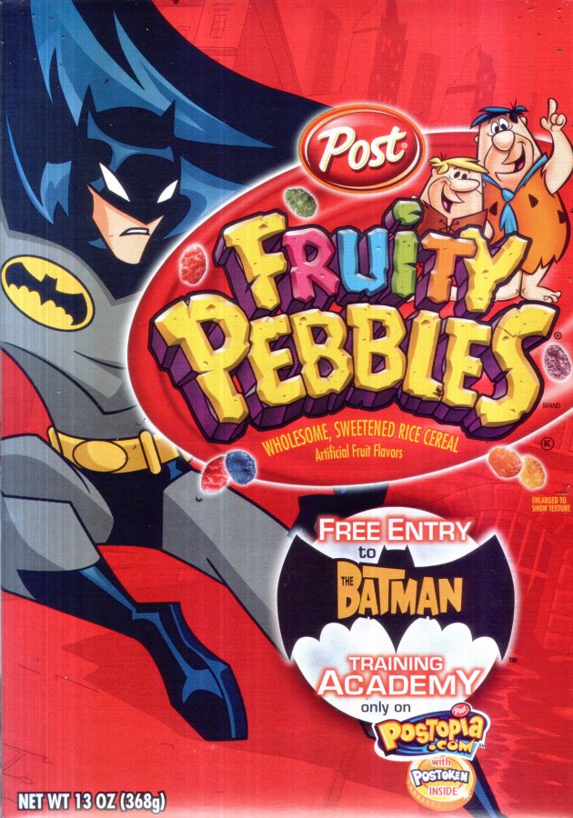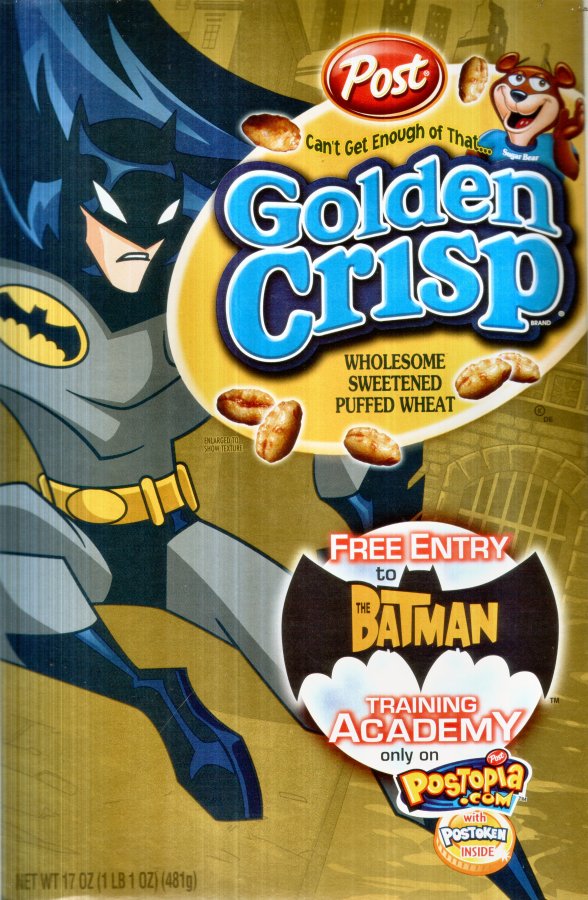 Post Post Limited Edition The Batman Cereal. Includes 4 Limited Edition The Batman Trading Cards and a Free Entry to The Batman Training Academy!