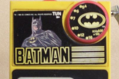 DC Comics The Batman transistor radio features AM capabilities and a backside clip to make it the perfect portable radio. Measures approximately 5 1/2" high, 3" wide, and 1 1/4" thick. ADDITIONAL IMAGE