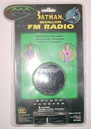 DC Comics Featuring the official movie logo, this Medallion FM Radio may be worn as a pendant or belt buckle. Features Volume Control, 3 1.5v Batteries, and Earphones.