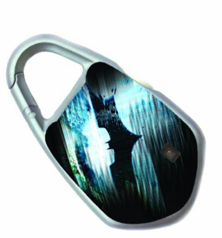 Bat logo shaped 1 GB flash drive MP3 player with headset. Can hold around 240 songs or store files. Comes in designer box packaged format.