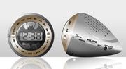 AM/FM clock radio with high-tech rotary tuning; built-in alarm; backlight display to see in the dark.