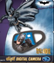 Digital Blue includes a spring carabineer clip for easy attachment to belts, bags and jackets — a function Batman himself might appreciate for his own utility belt. The Clipt! Digital Camera. is available in two designs, holds up to 40 pictures and features VGA resolution, and an LCD frame counter. The Batman Clipt! Digital Camera also includes photo editing software that allows you to insert yourself into scenes or add characters from the Batman movie.