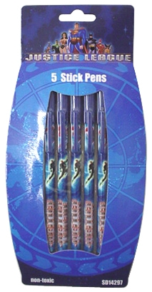 DC Comics This set contains 5 stick pens with great Justice League illustrations. Non-toxic.