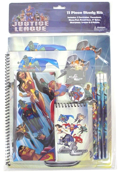 DC Comics This fully-loaded 11 Piece Study Kit includes 2 Portfolios, a Notebook, Memo Pad, Pencil Case, 6" Ruler, Sharpener, Eraser, and 3 Pencils!