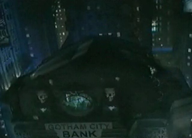 The Penguin is chasing Batman, and blowing up parts of the city. Batman uses Onstar to call Vicki Vale and tell her that he'll be late.